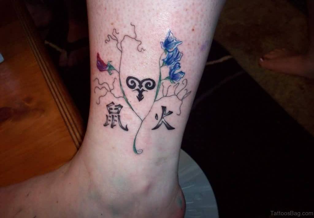 Libra Leo And Aries Zodiac Tattoo Designs On Ankle