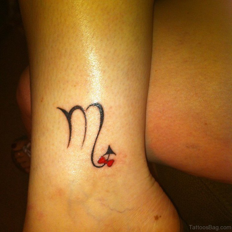 Black Ink Scorpio Zodiac Tattoo On Ankle