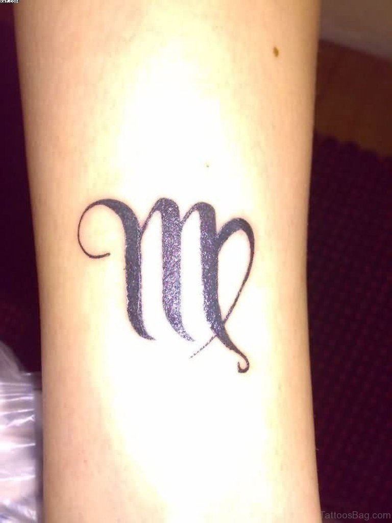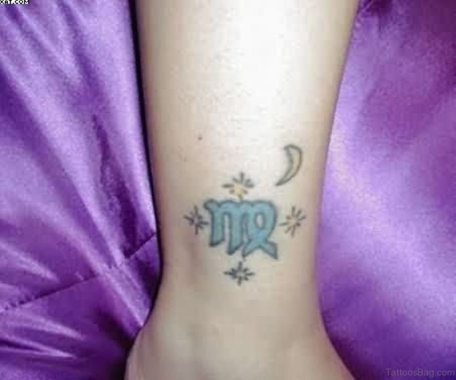 Small Blue Ink Virgo Zodiac Tattoo For Ankle