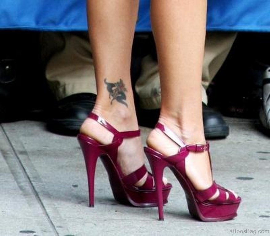 Amazing Tattoo Of Aries Zodiac Sign On Girl Ankle