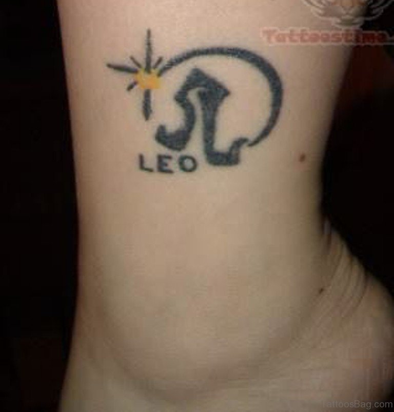 Attractive Black Ink Leo Zodiac Sign Tattoo On Ankle