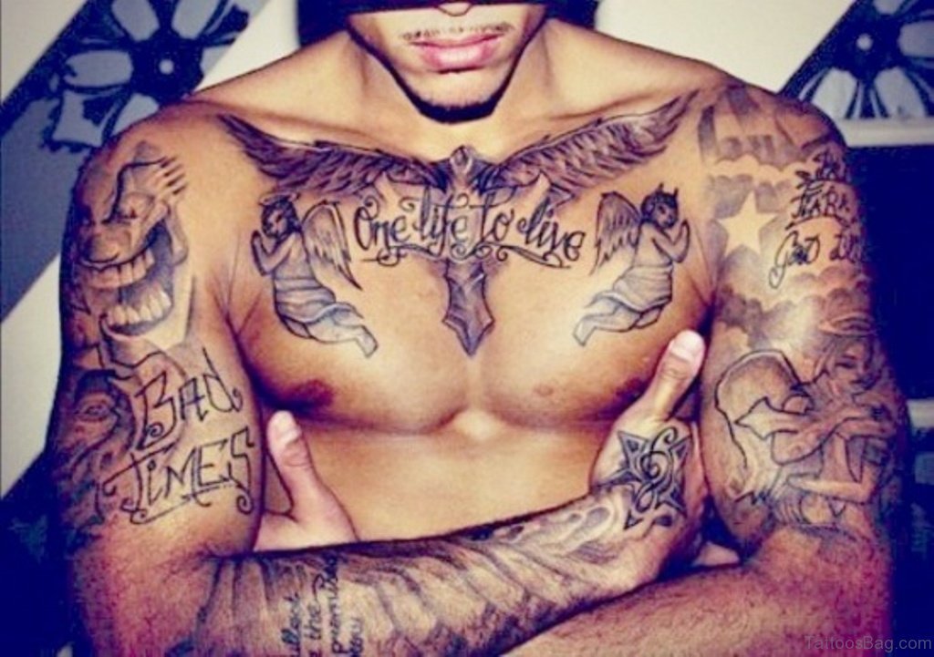 Chris Brown Wings Chest Tattoo