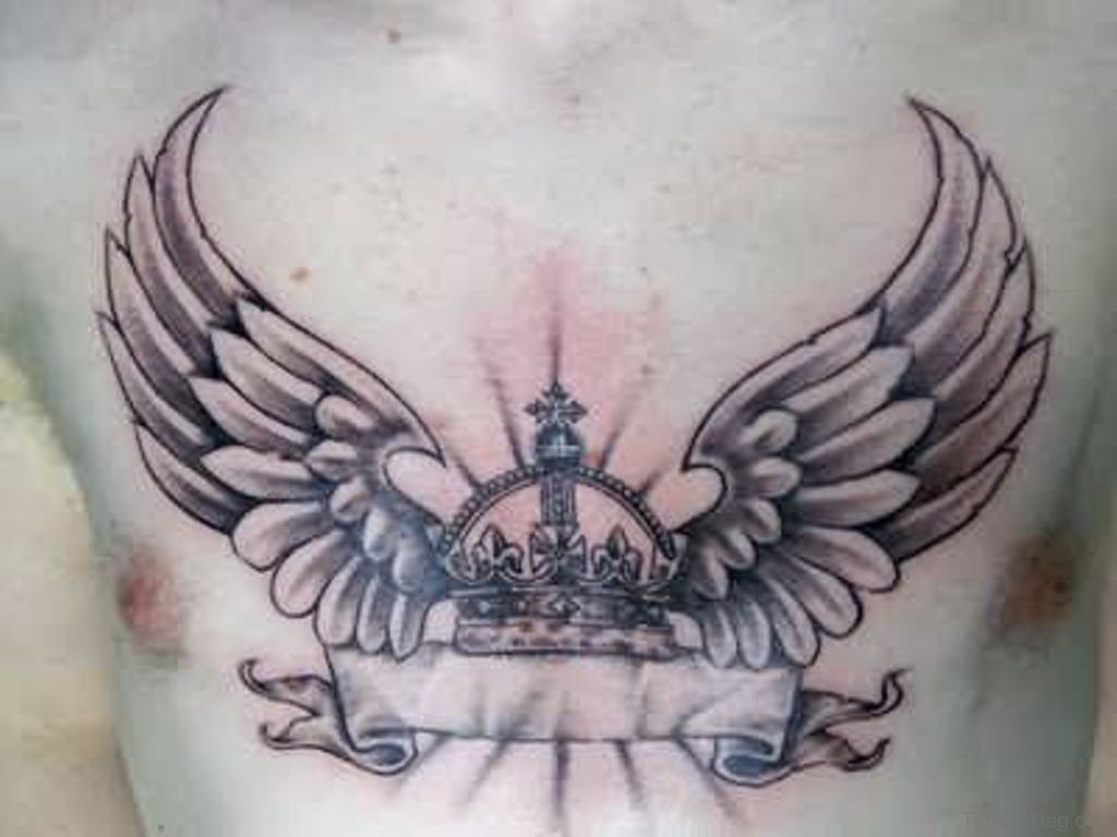 Crown With Wings Tattoo On Chest