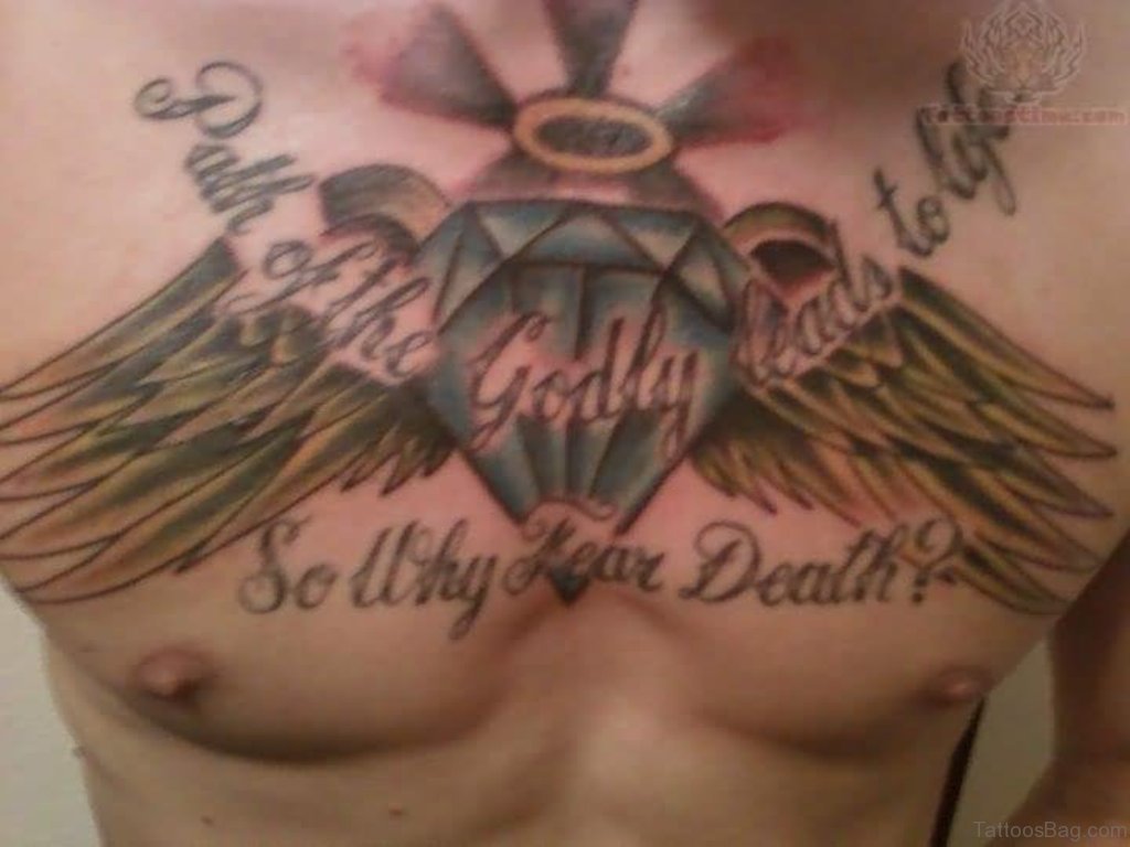 Angel Wings Diamond Tattoo Design On Chest