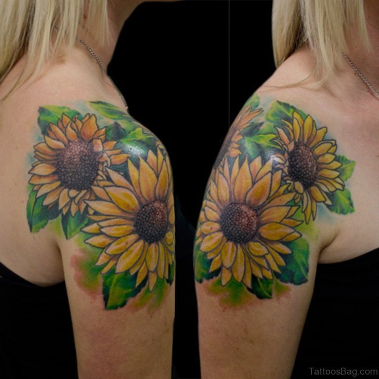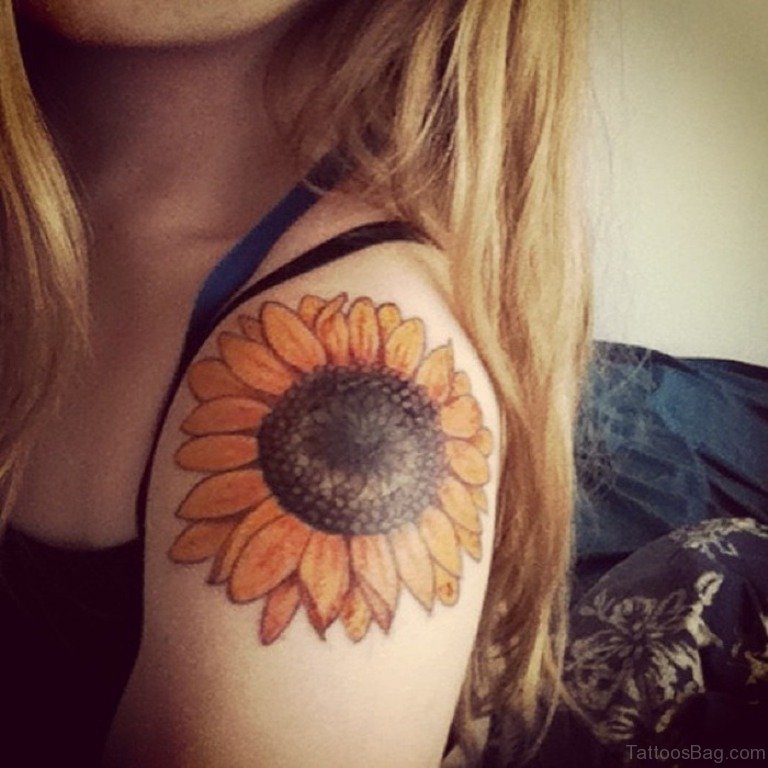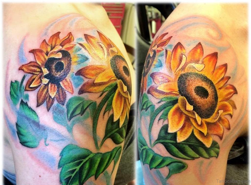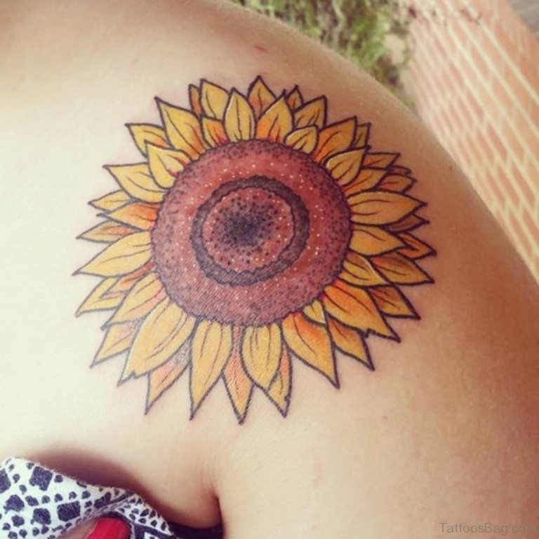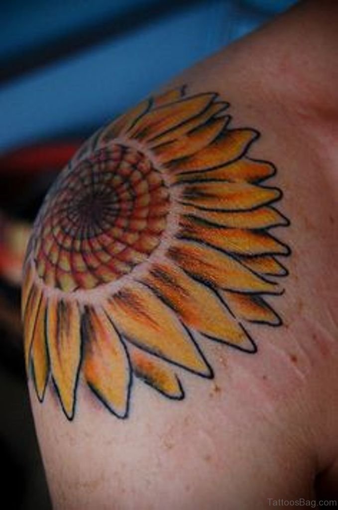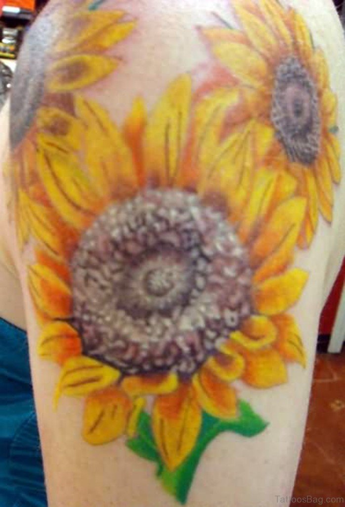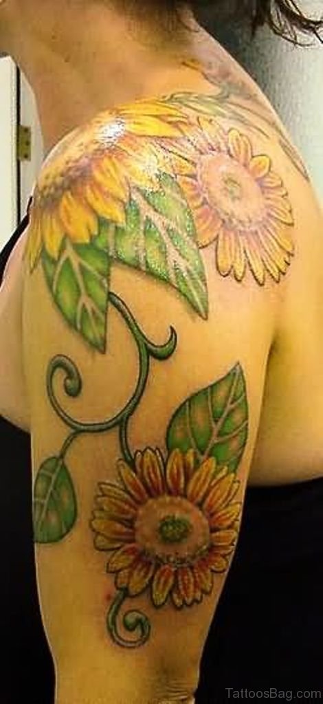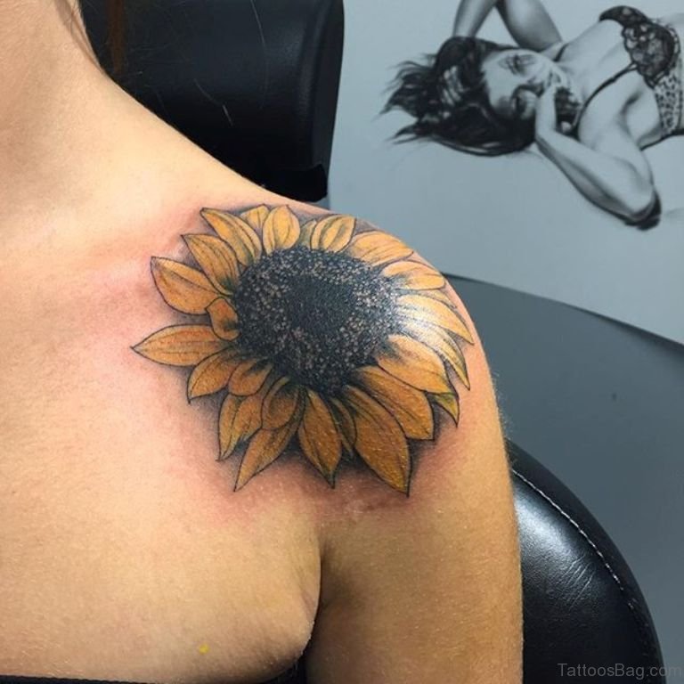 Awesome Yellow Sunflower Tattoo For Shoulder