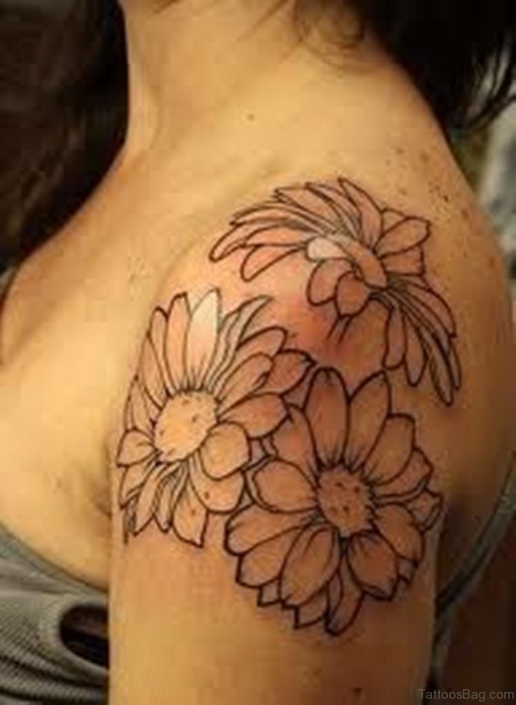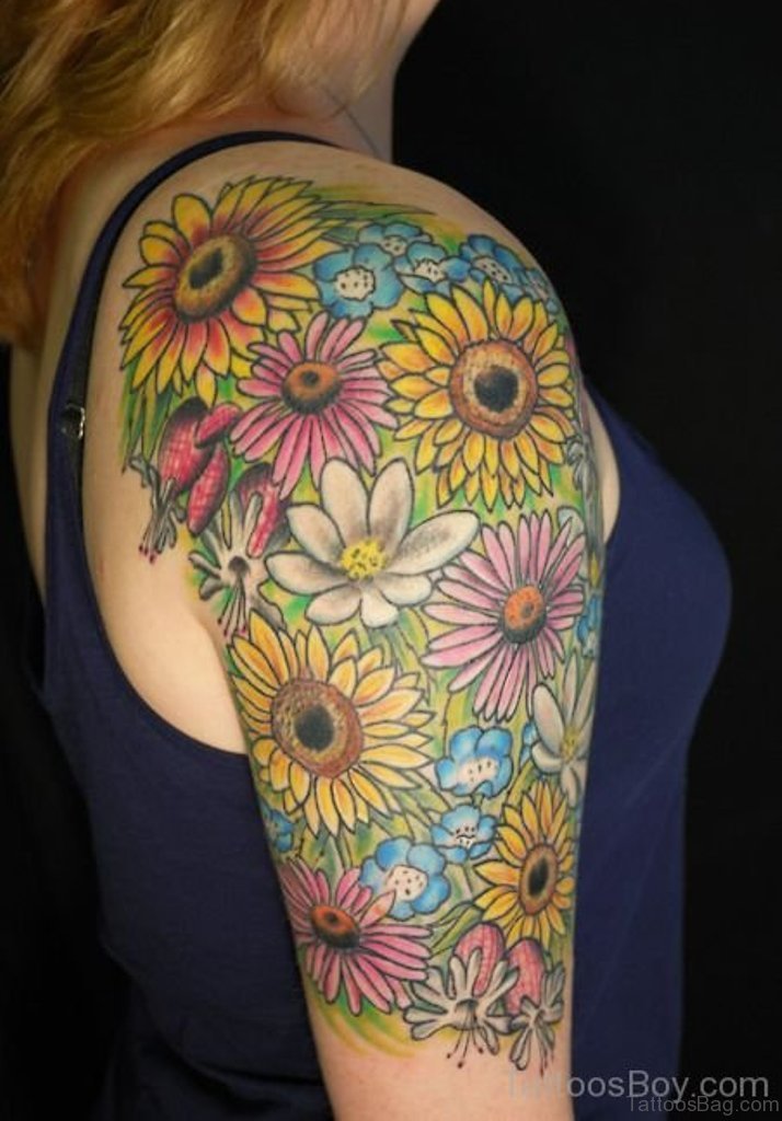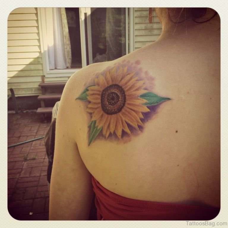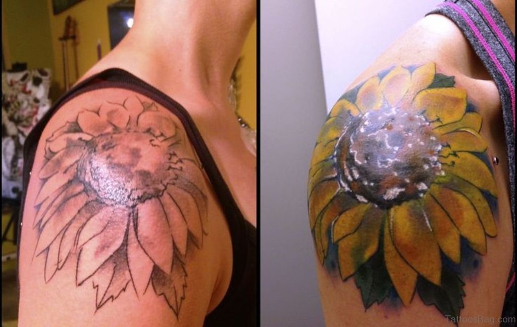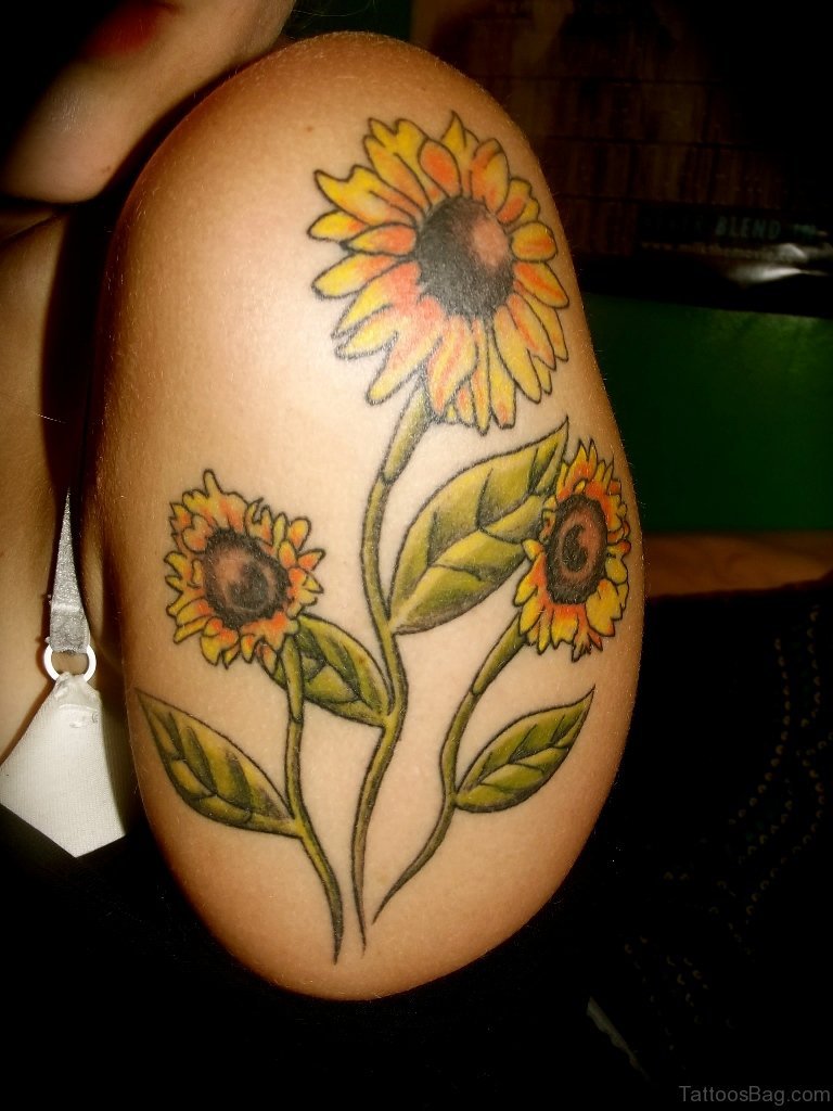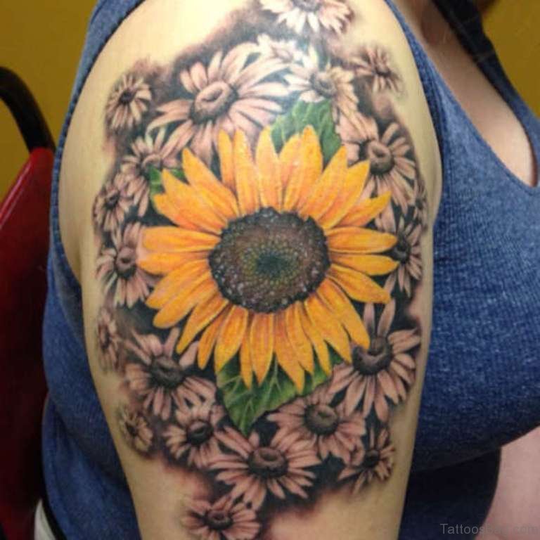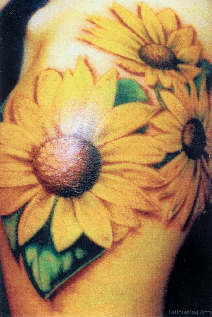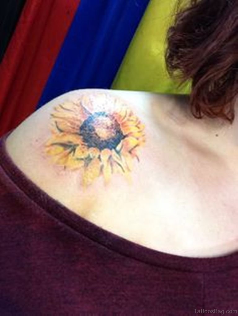 Awesome Yellow Sunflower Tattoo For Shoulder