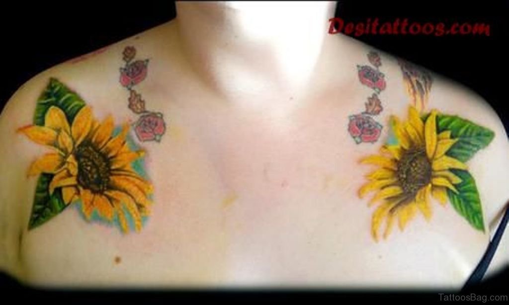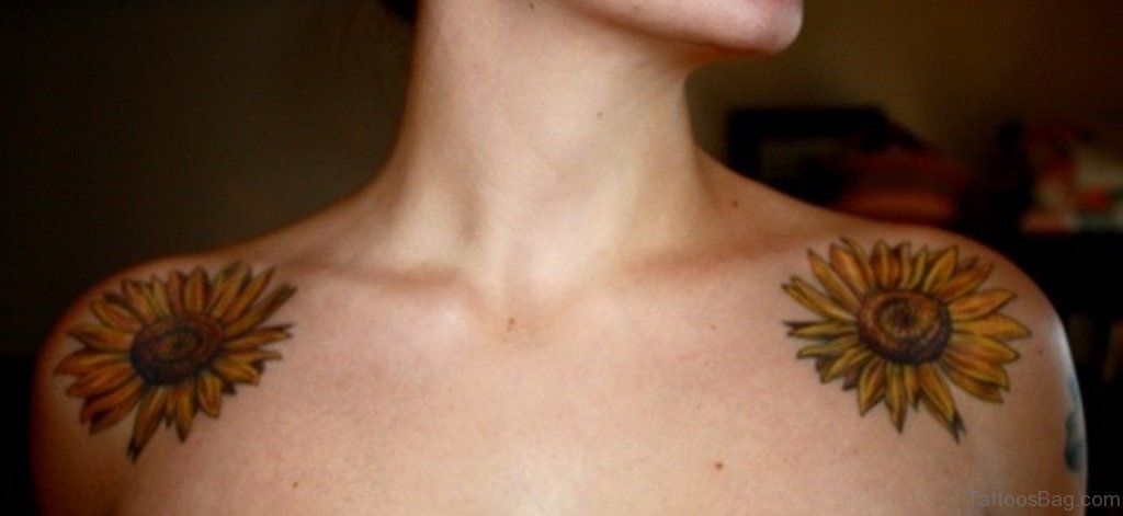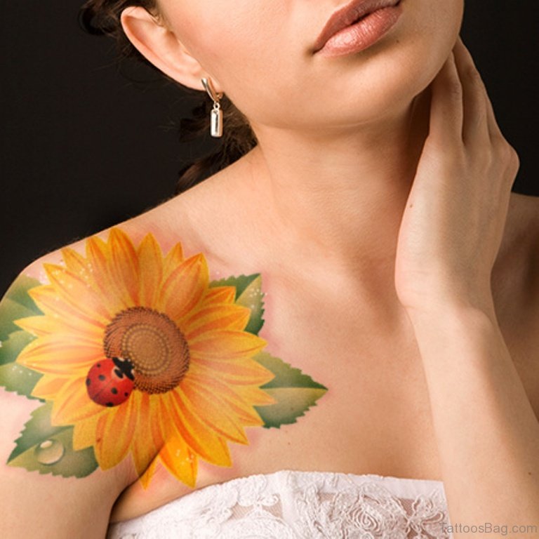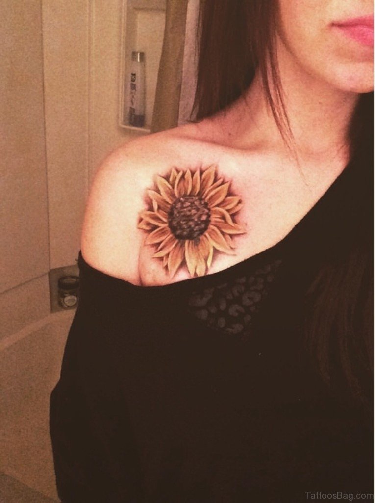 Yellow Sunflower Tattoo Design On Front Shoulder