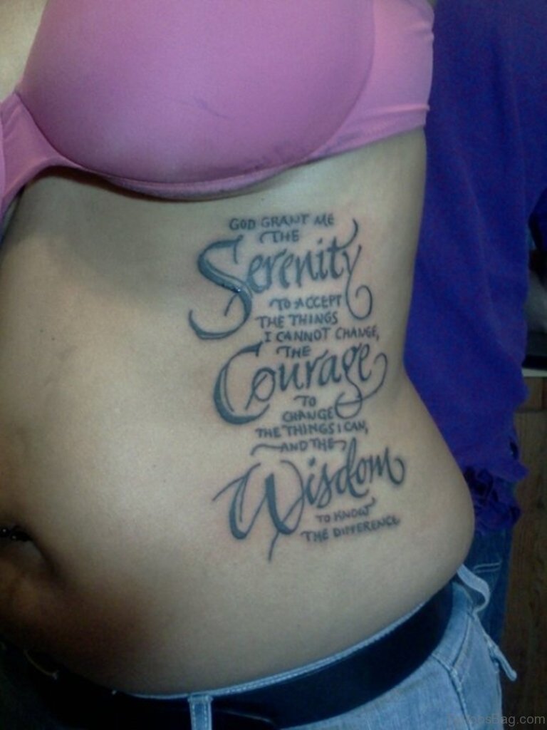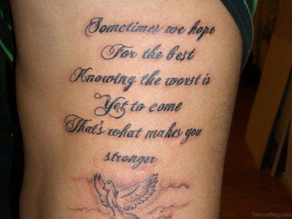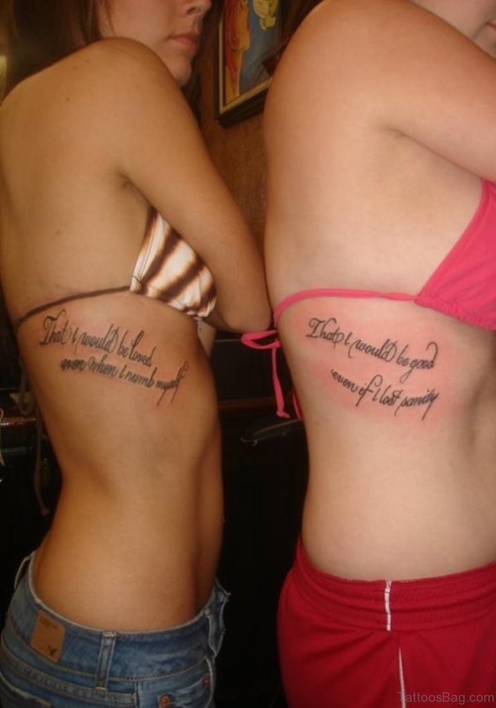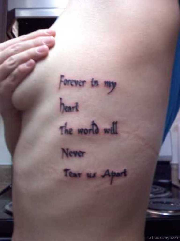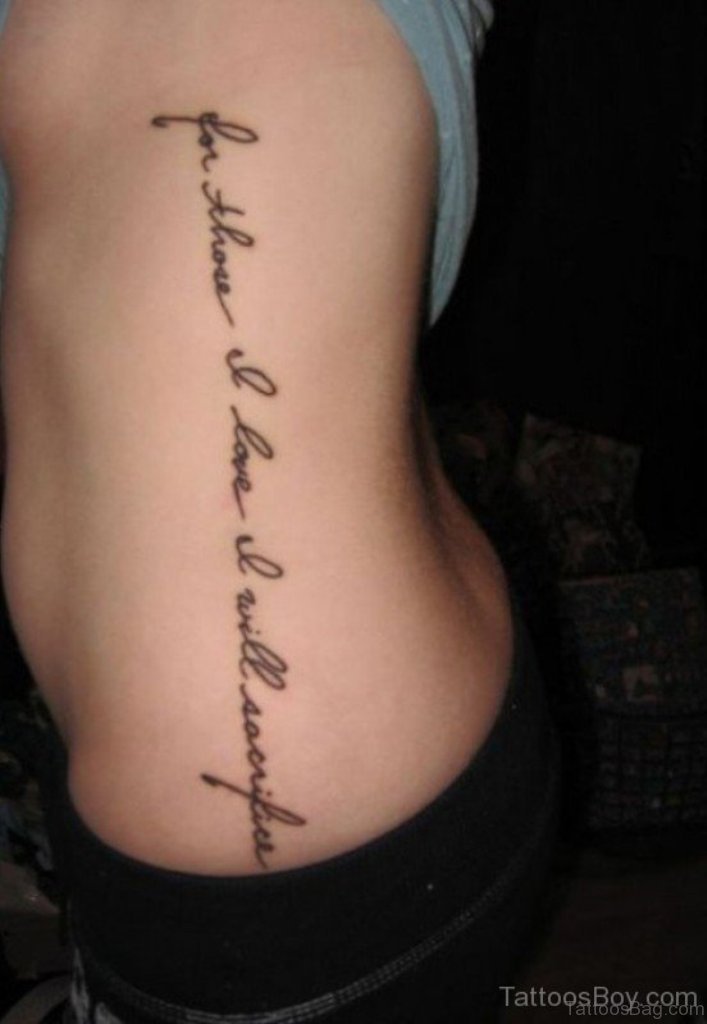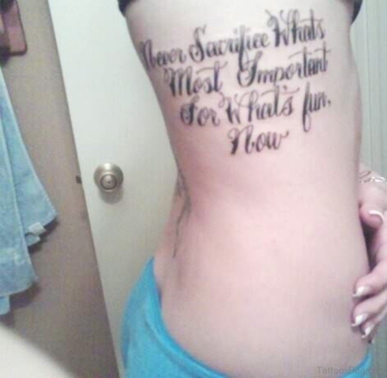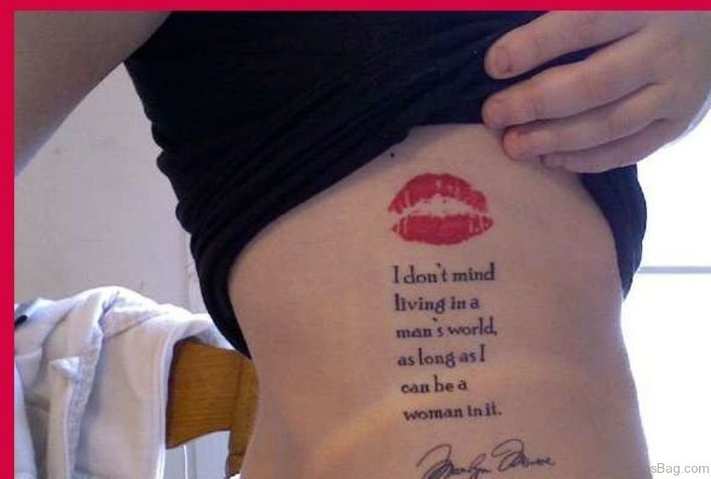 Kiss Lips And Wording Tattoo On Ribs For Girls