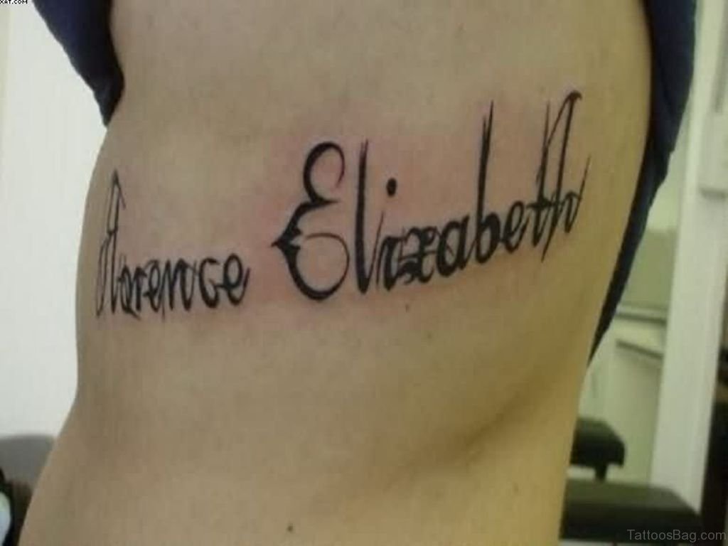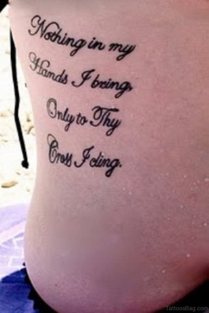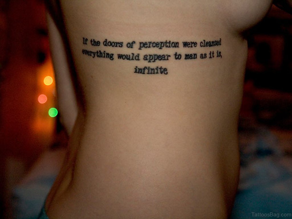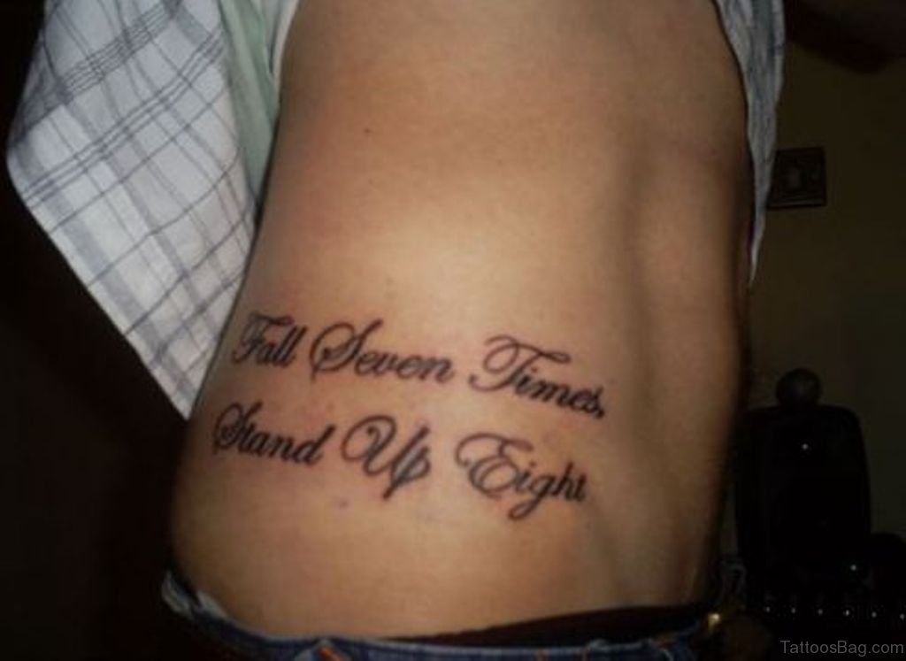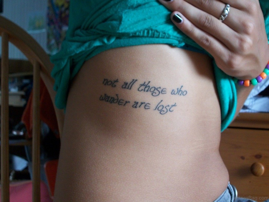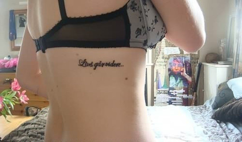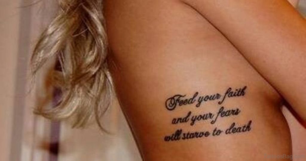 Kiss Lips And Wording Tattoo On Ribs For Girls
