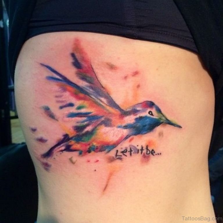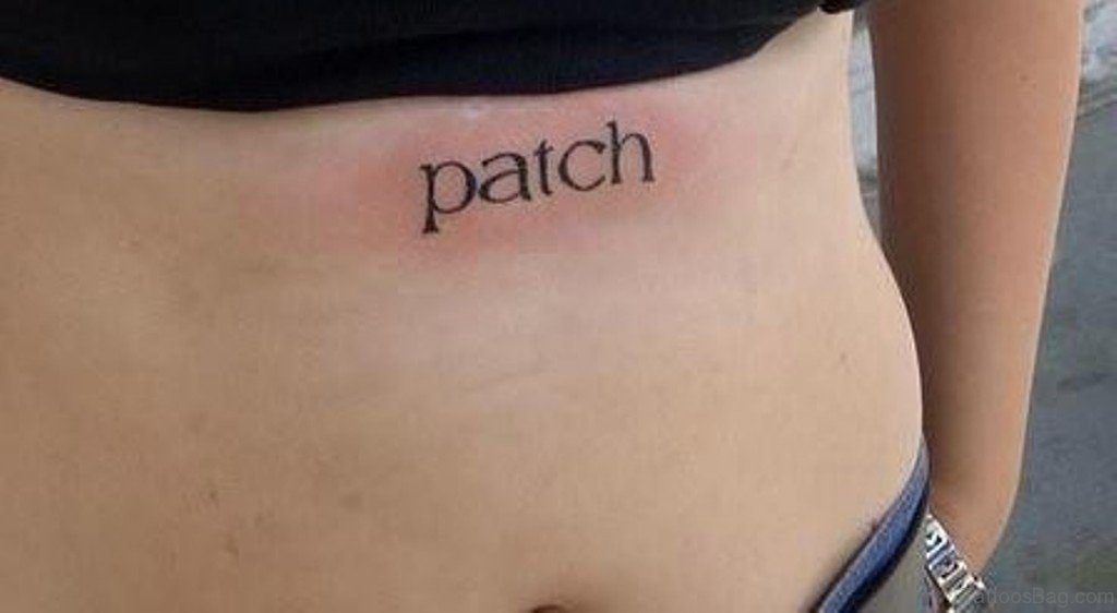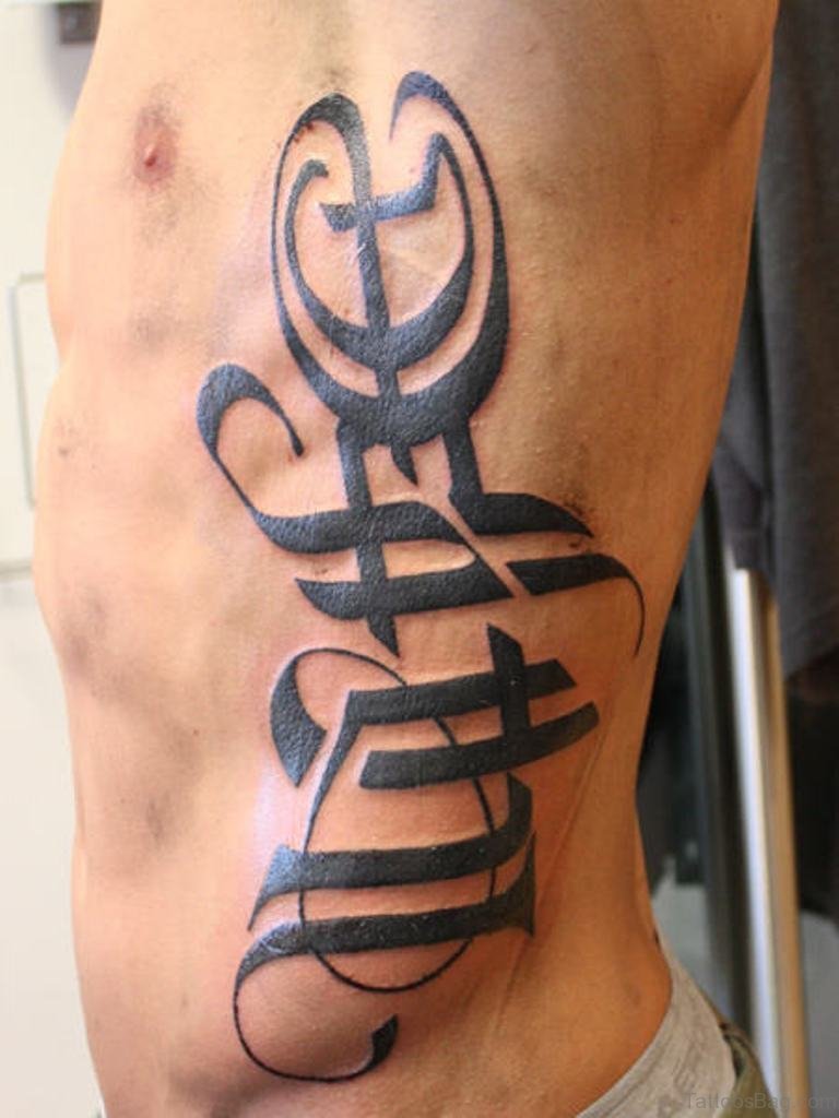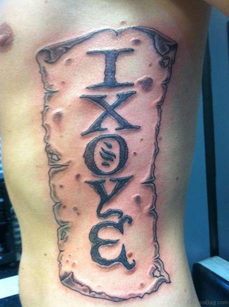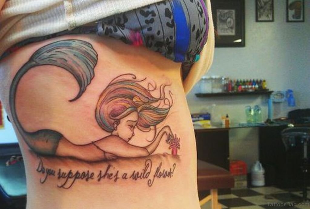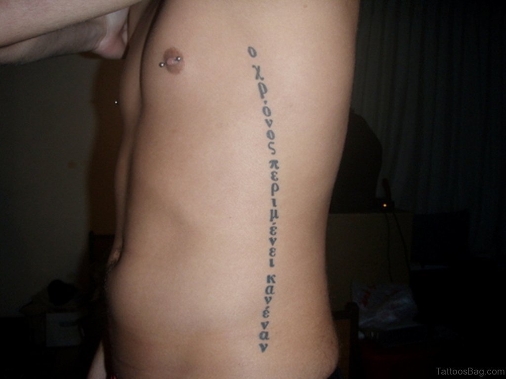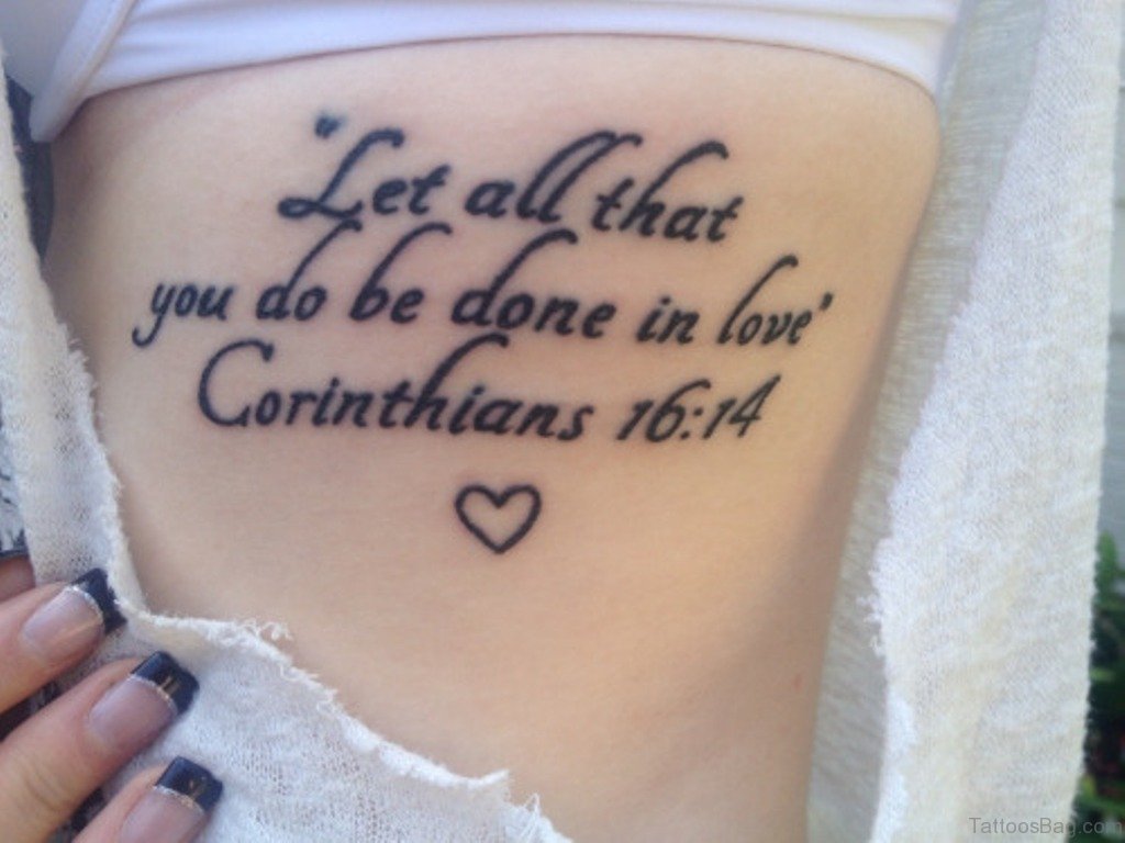 Kiss Lips And Wording Tattoo On Ribs For Girls