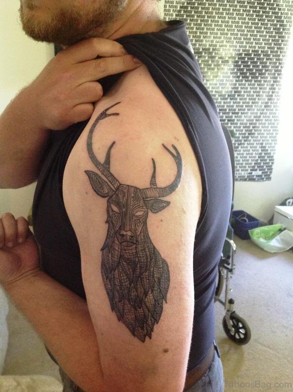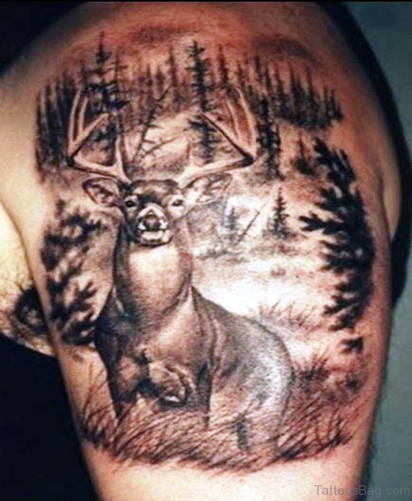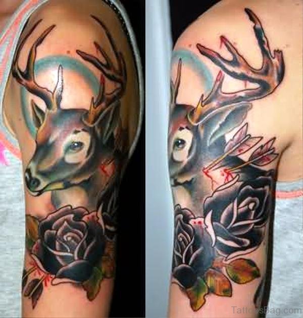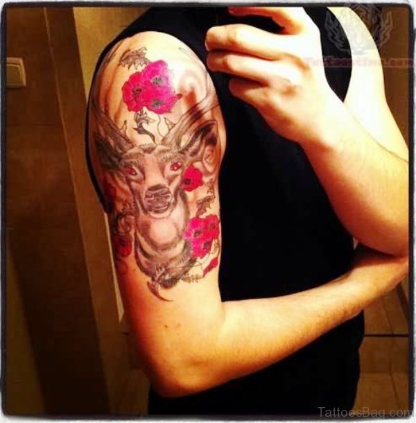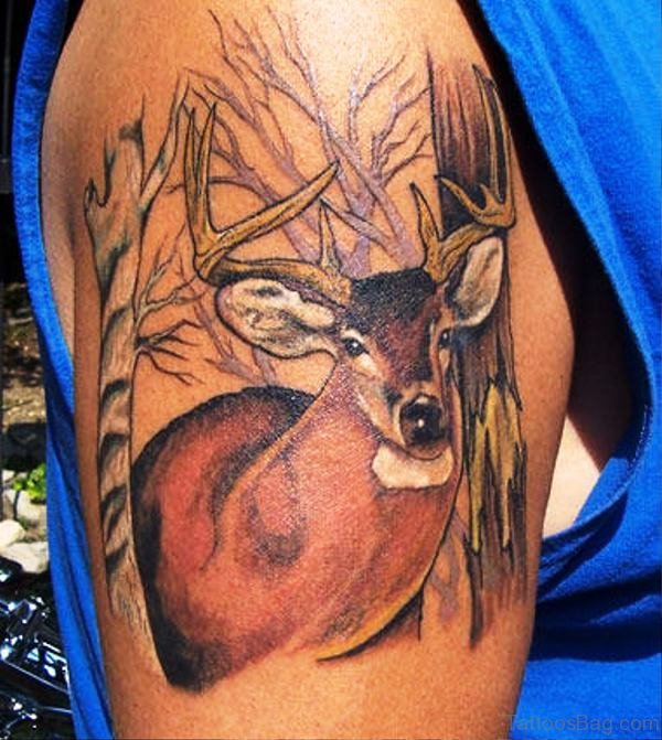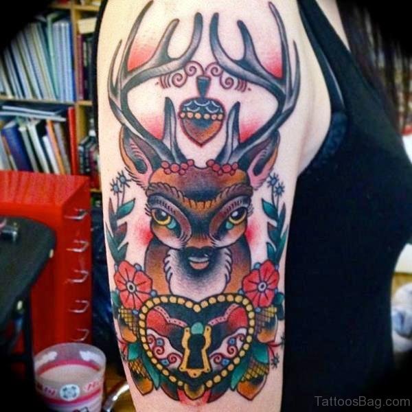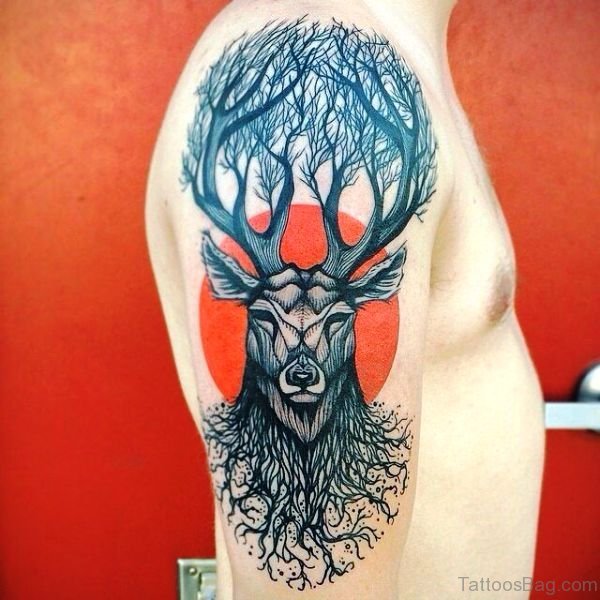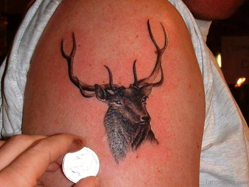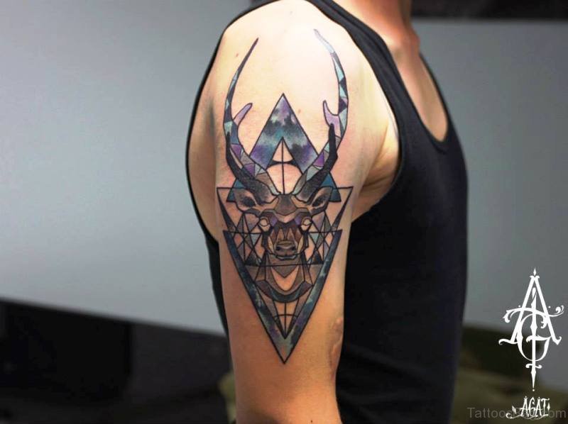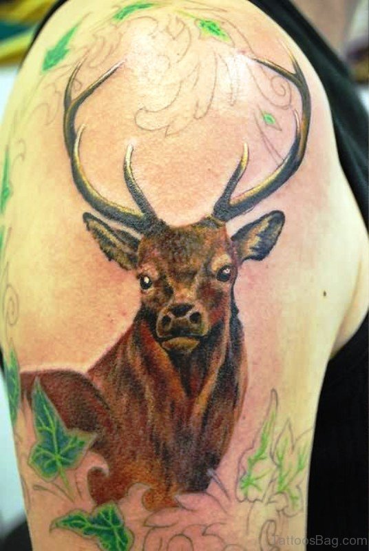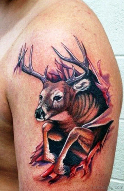 Supremely Unique Buck Eye Tattoo On Shoulder