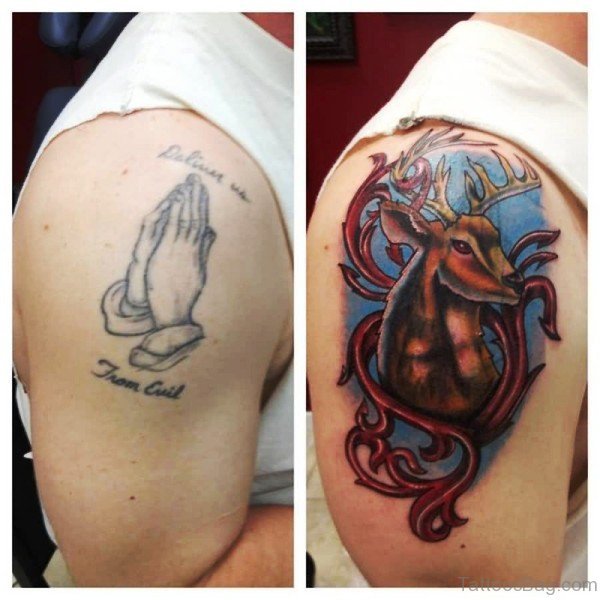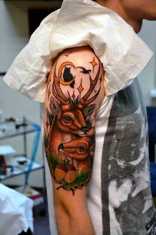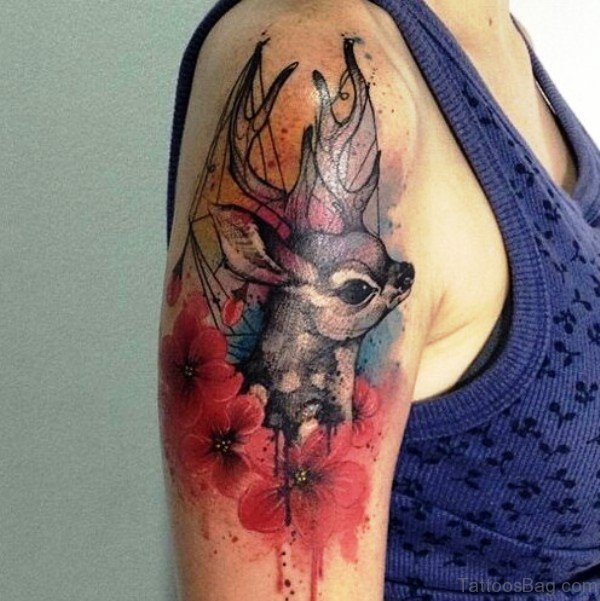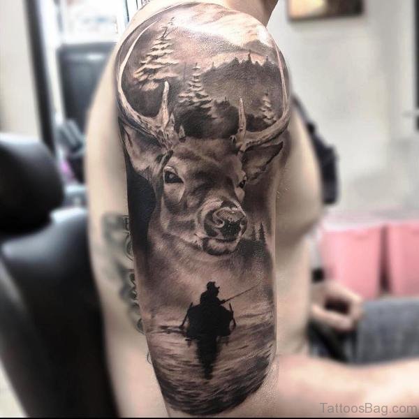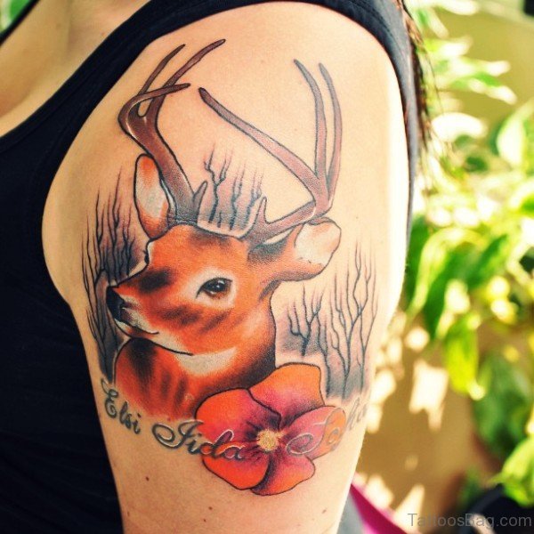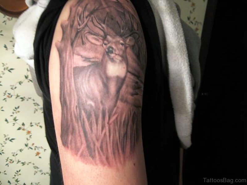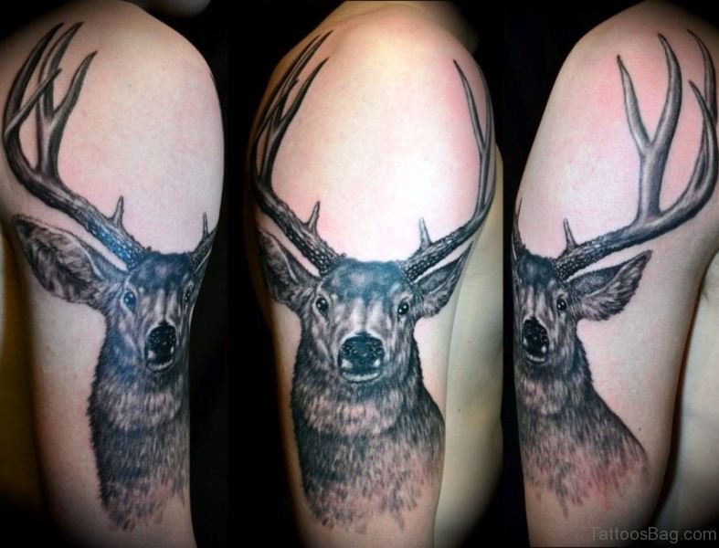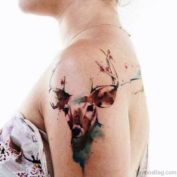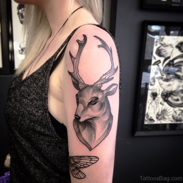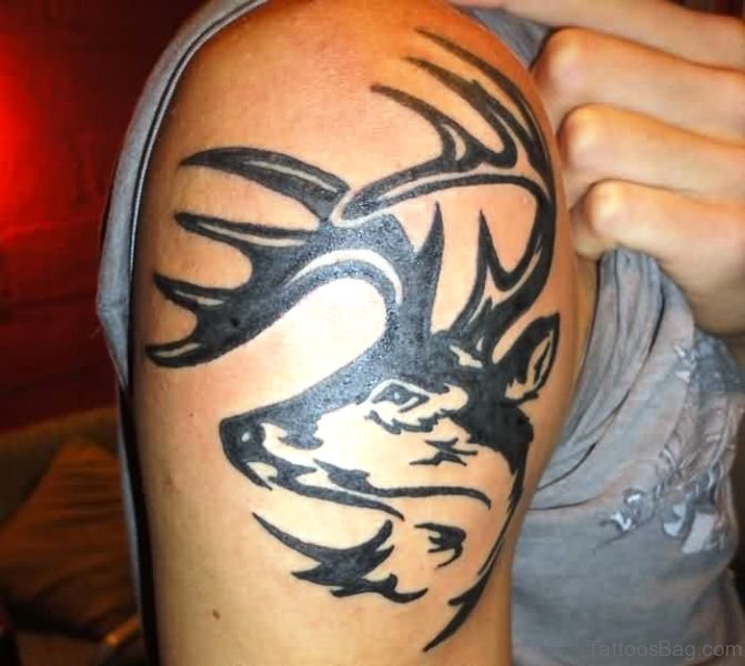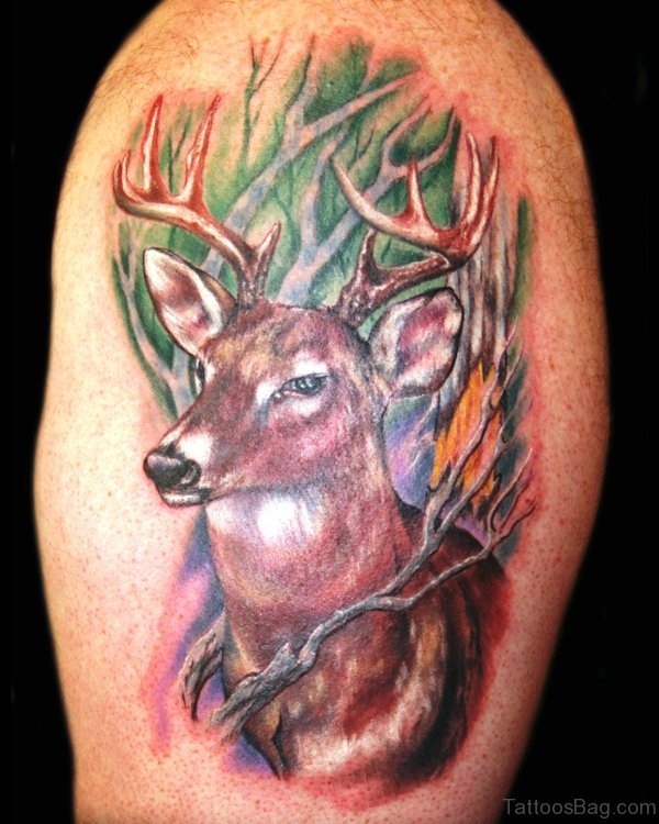 Supremely Unique Buck Eye Tattoo On Shoulder