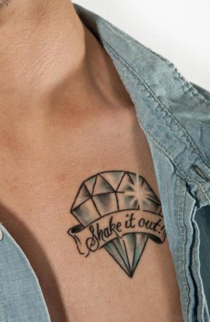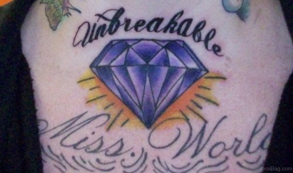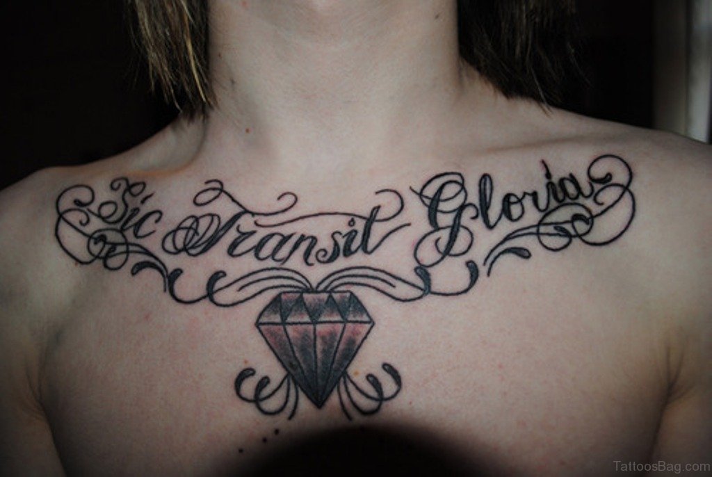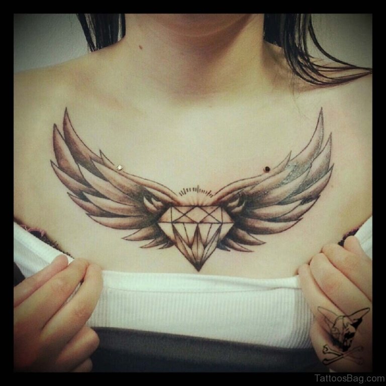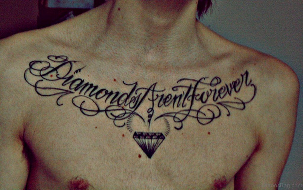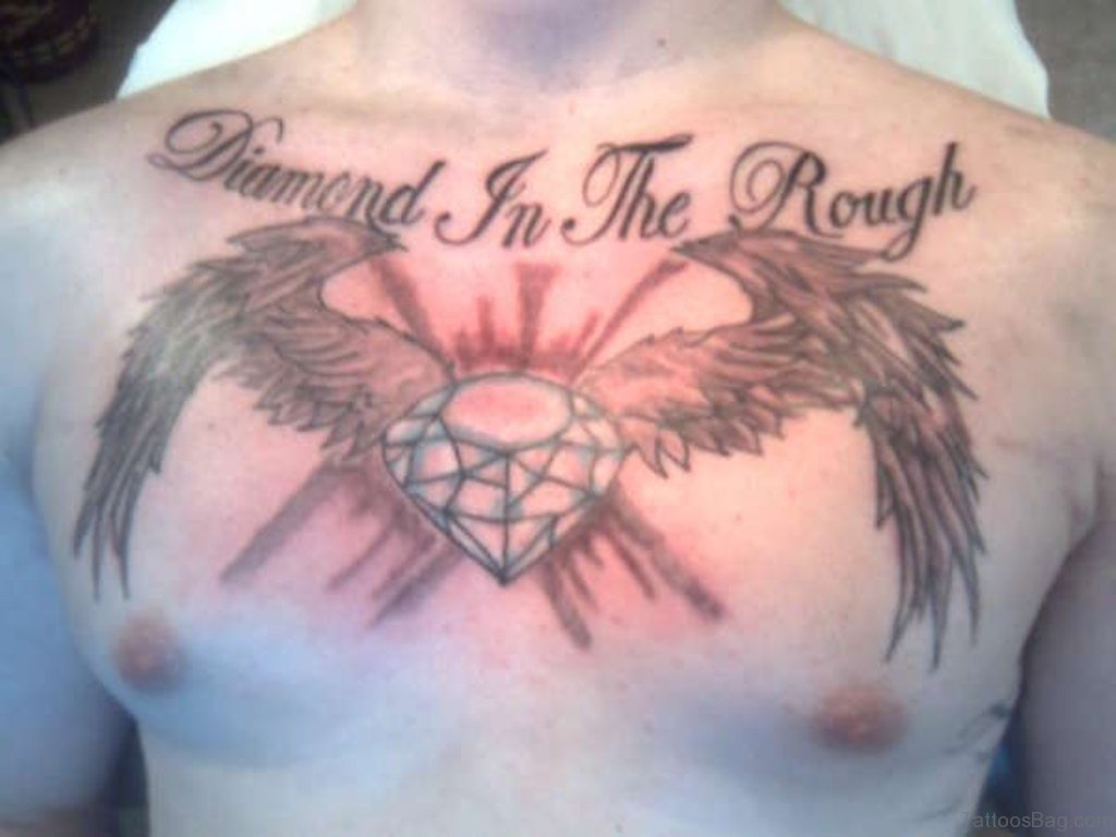 Never Look Back Banner And Winged Diamond Tattoo On Chest