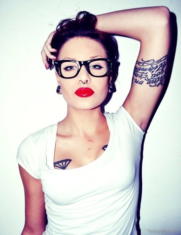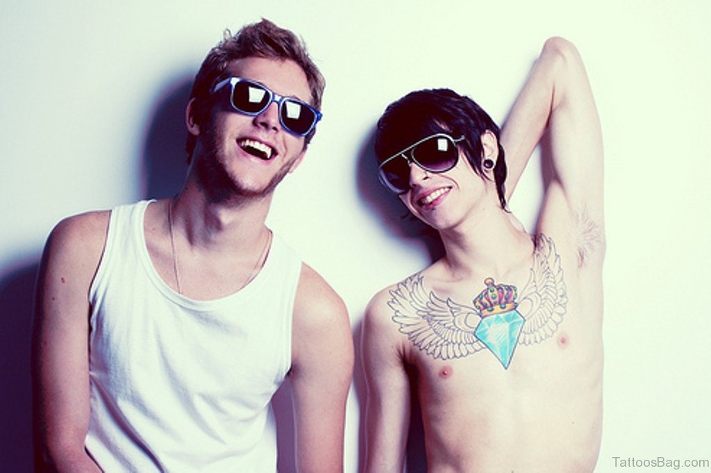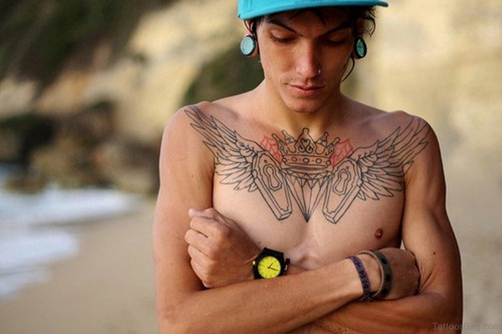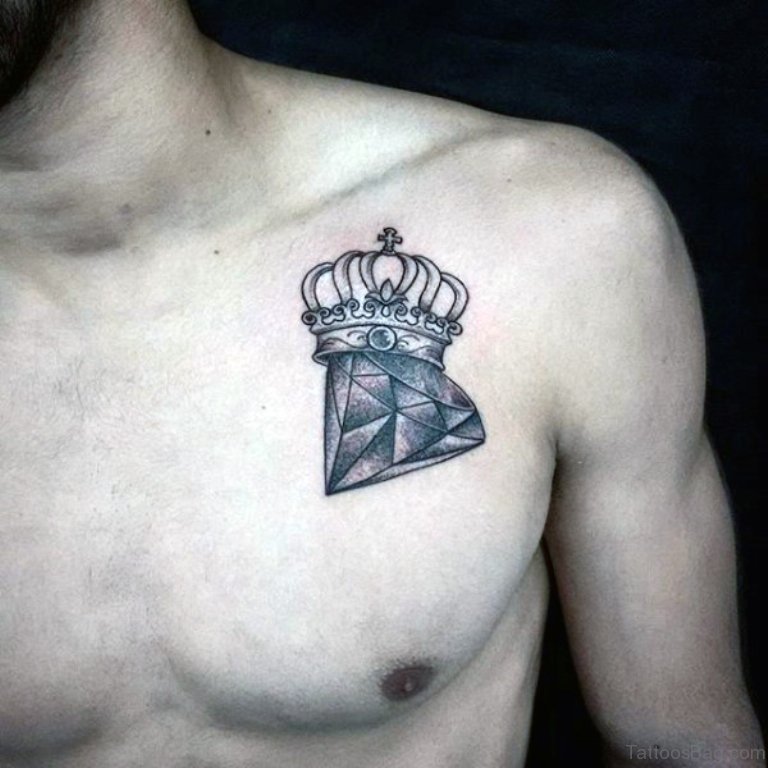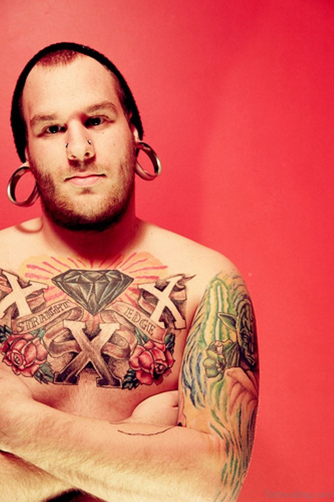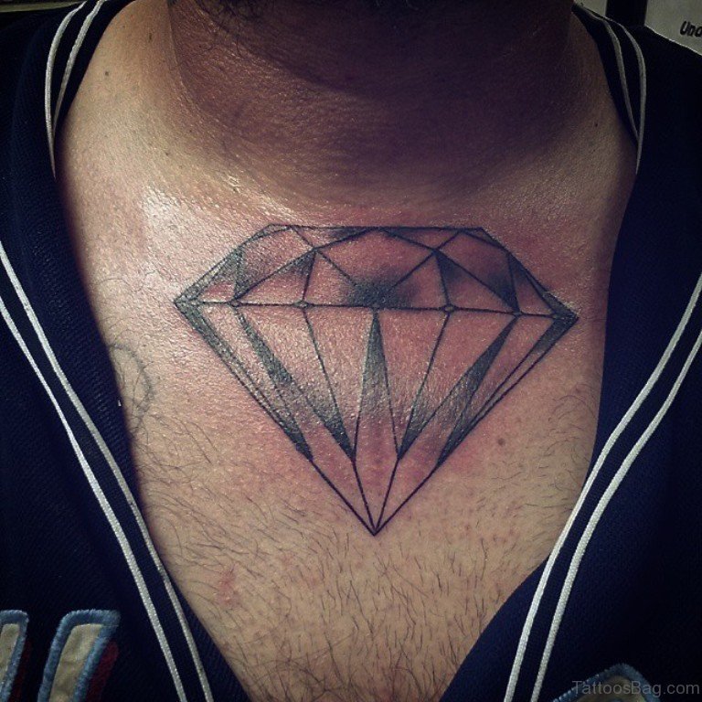 Never Look Back Banner And Winged Diamond Tattoo On Chest