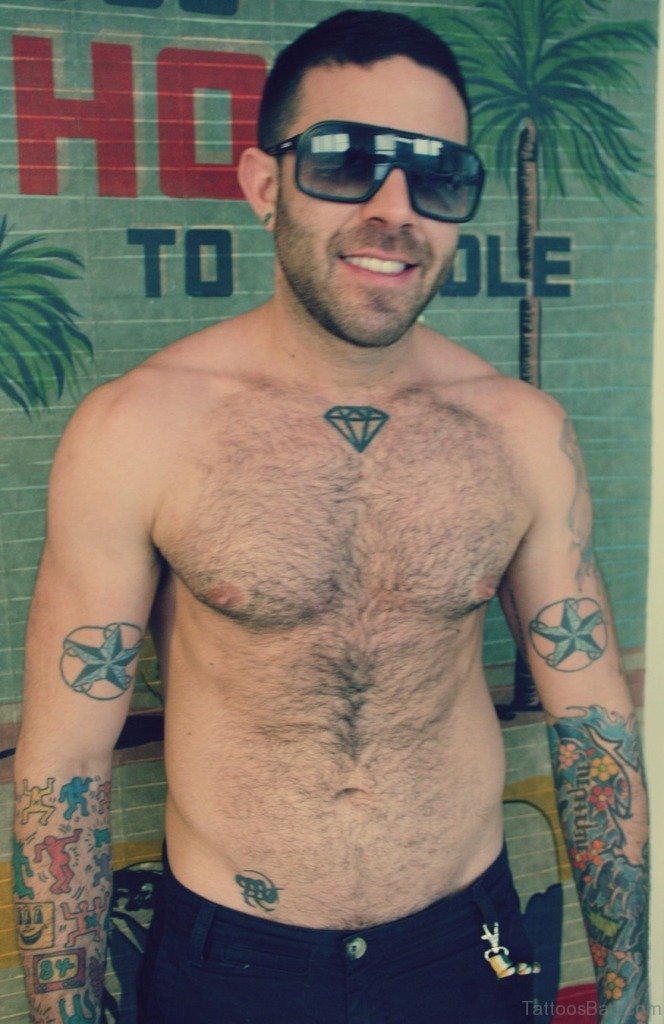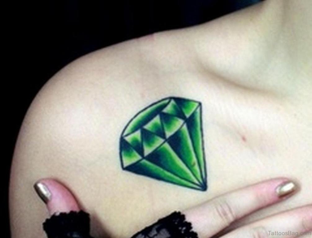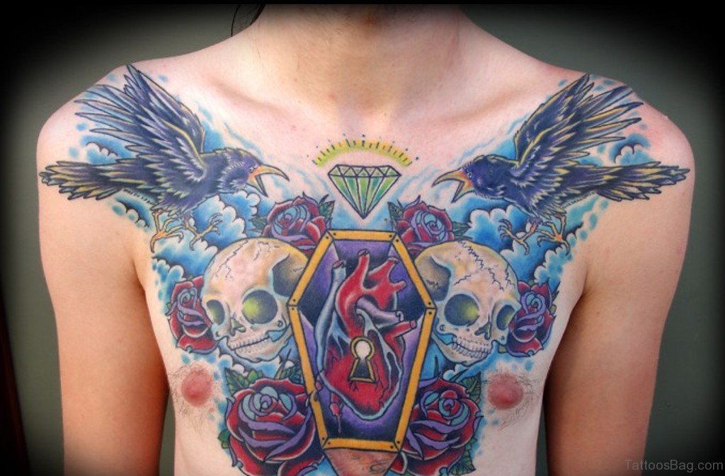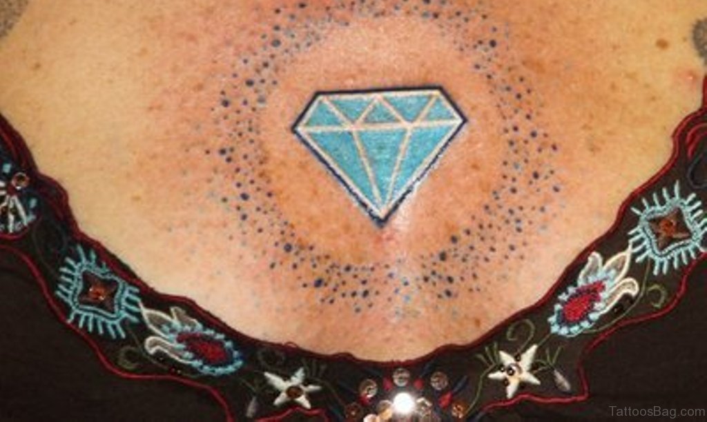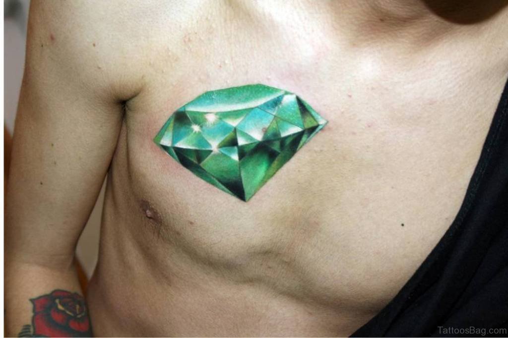 Color Diamond And Flowers Tattoo On Chest For Girls