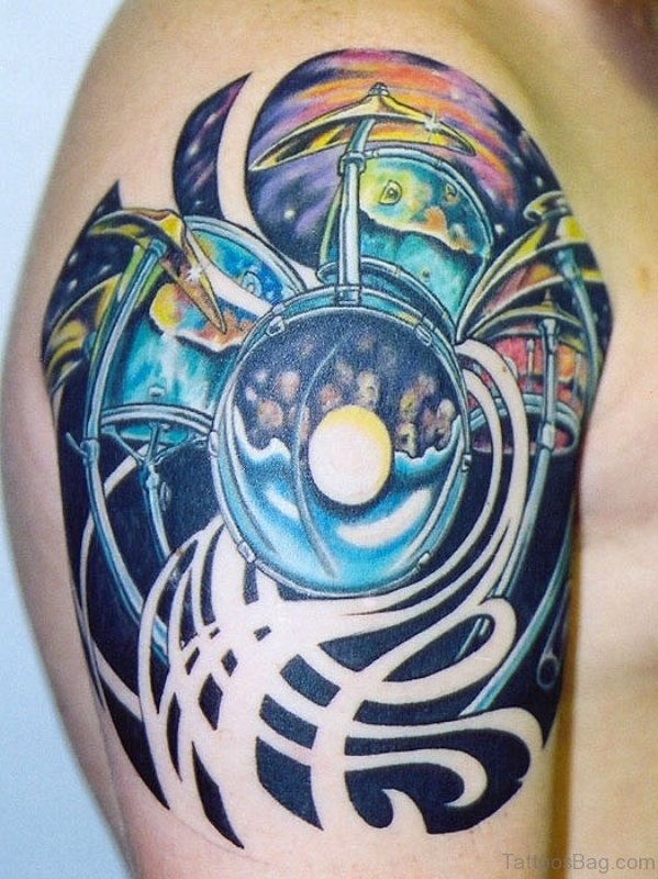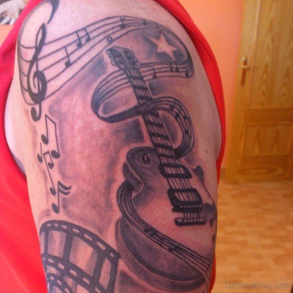 Nice Music Shoulder Tattoo Design