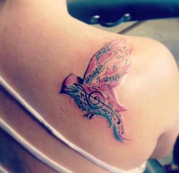 Sweet Music Bird Shoulder Tattoo