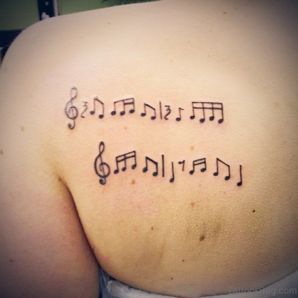 Sweet Music Note Tattoo On Shoulder Back