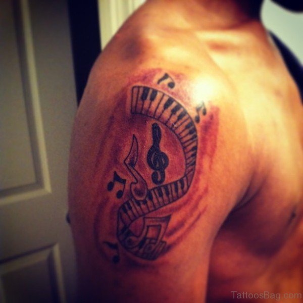 Amazing Music Tattoo On Shoulder Tattoo