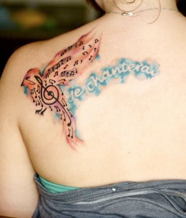 Sweet Bird With Music Tattoo