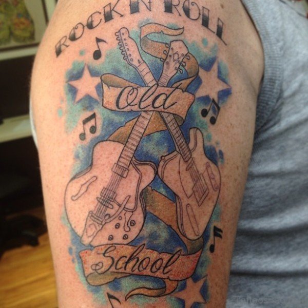 Lovely Guitar Tattoo On Shoulder