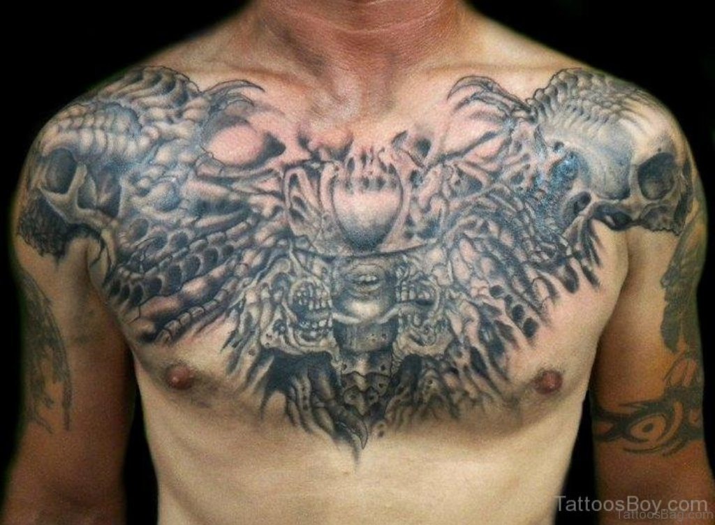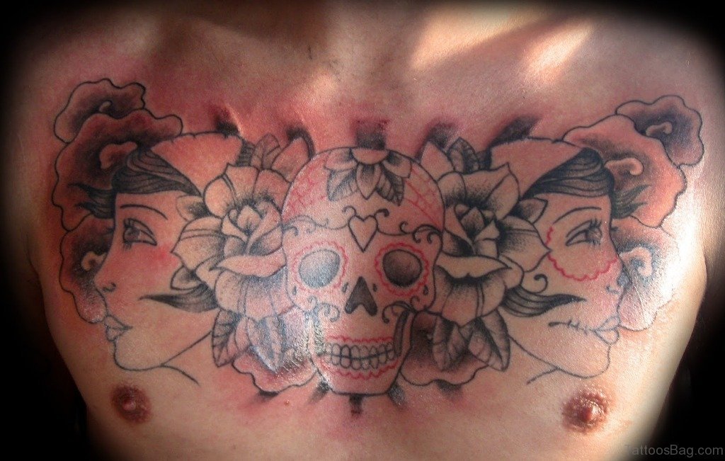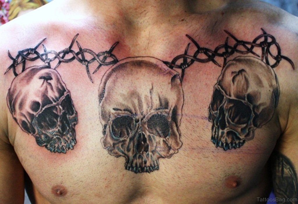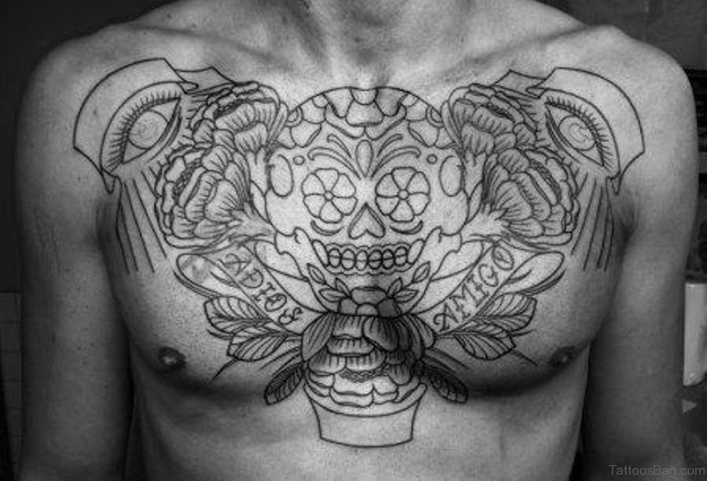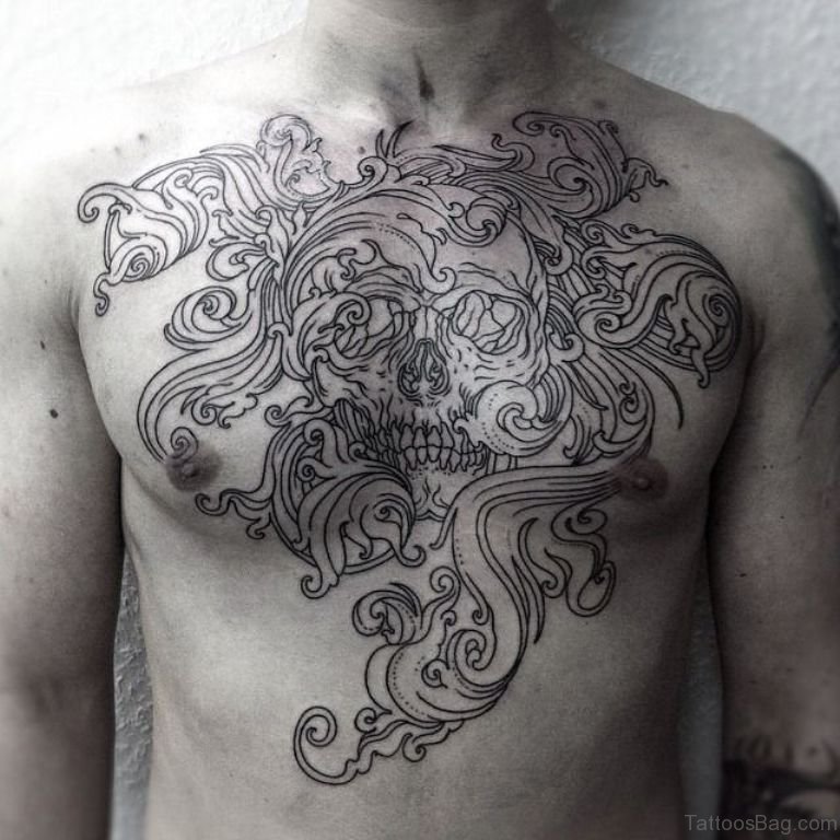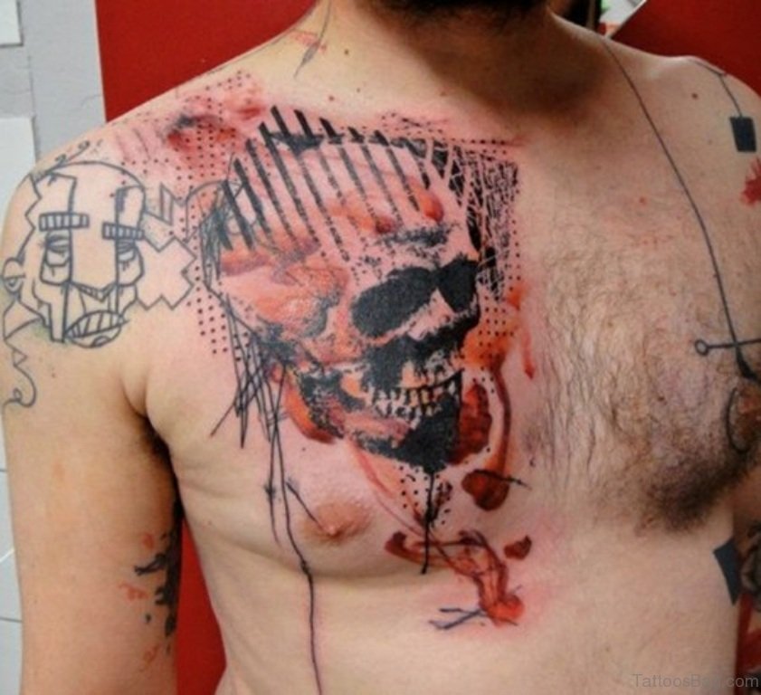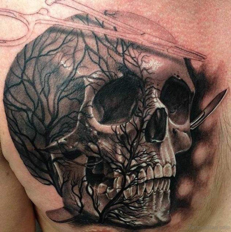 Nice Skull Chest Tattoo