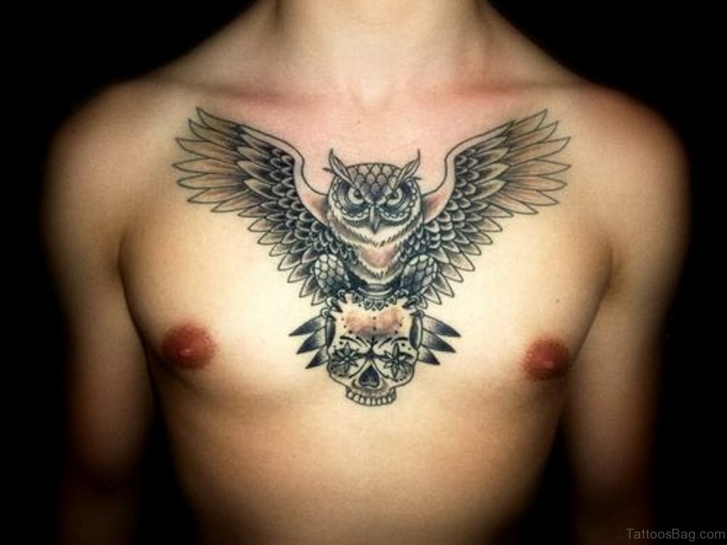 Owl And Skull Tattoo On Chest