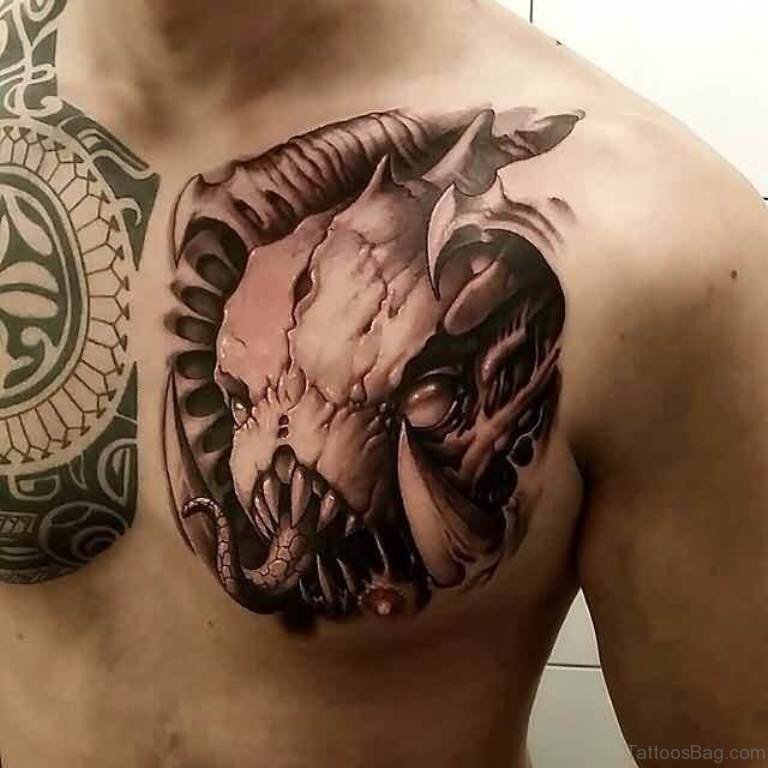 Wicked Skull Tattoo On Chest