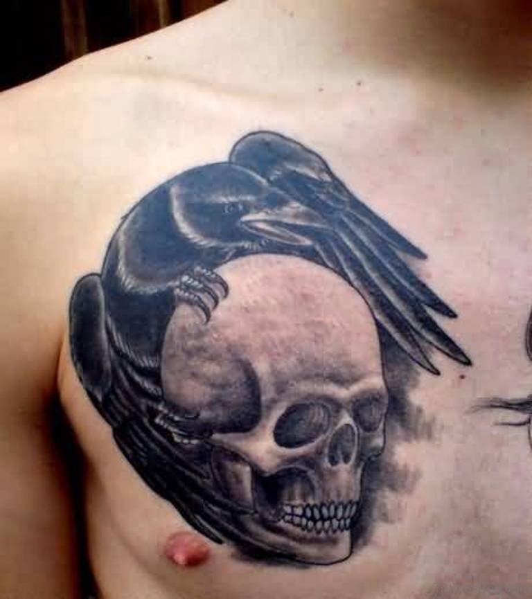Skull Raven Chest Tattoo
