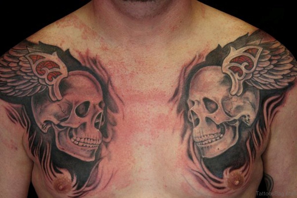 Skull With Wings Tattoo On Chest