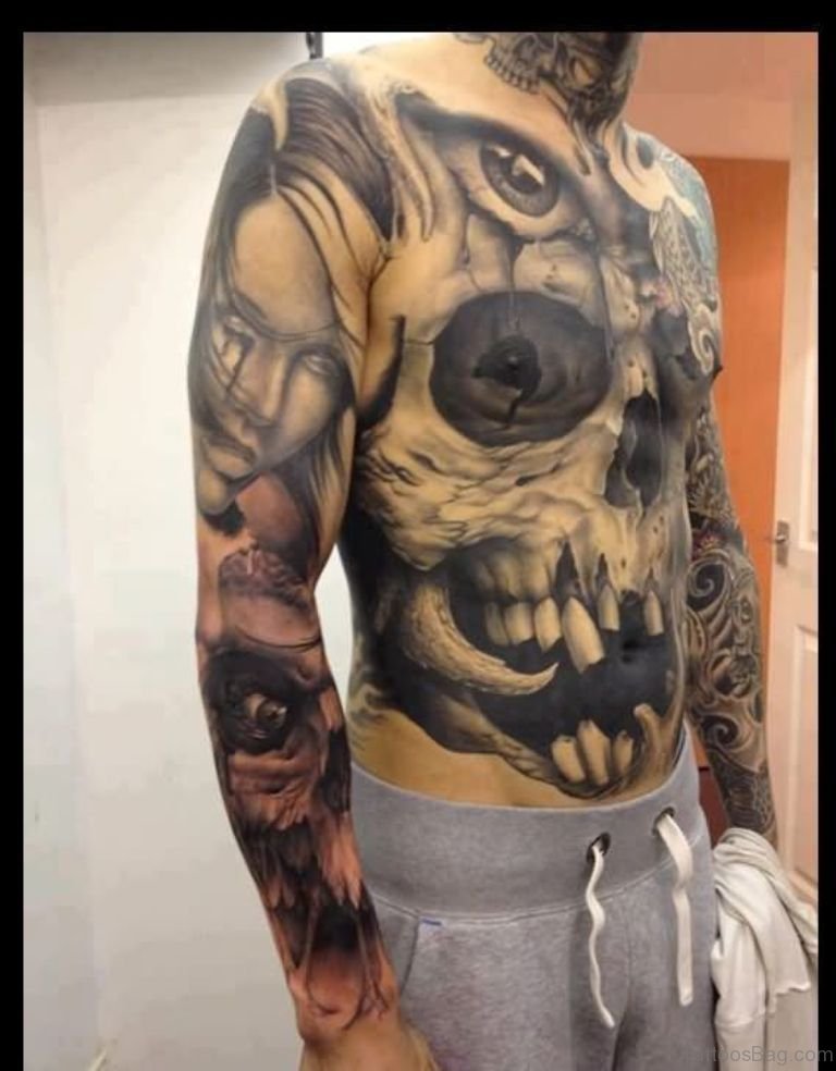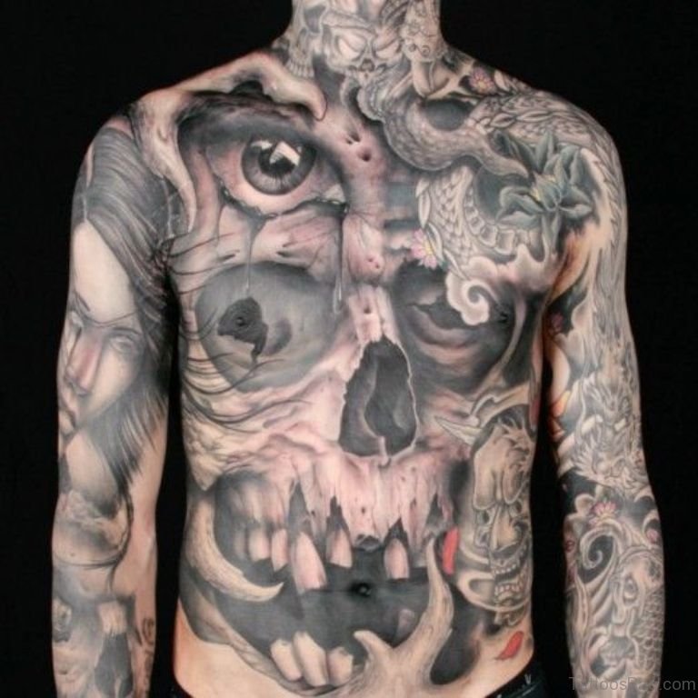 Horror Skull Tattoo On Chest
