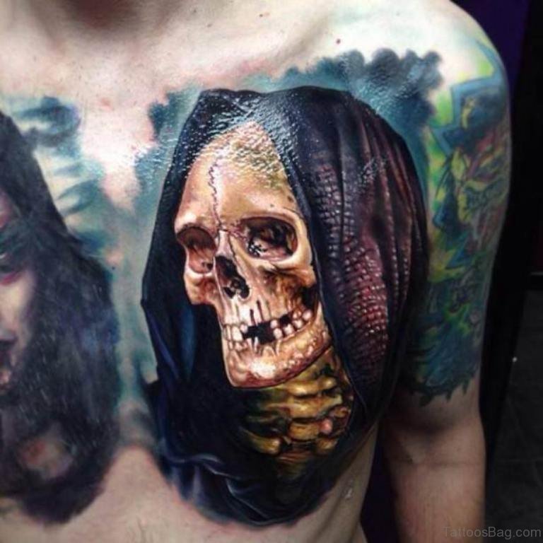 Skull With Hood Chest Tattoo
