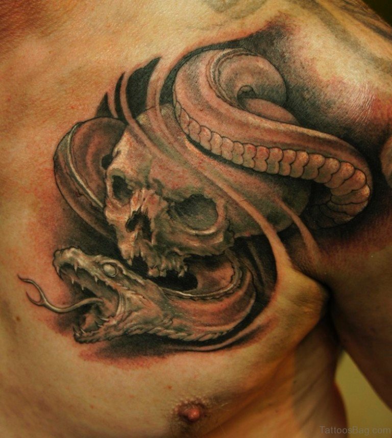 Skull And Dragon Men Chest Tattoo